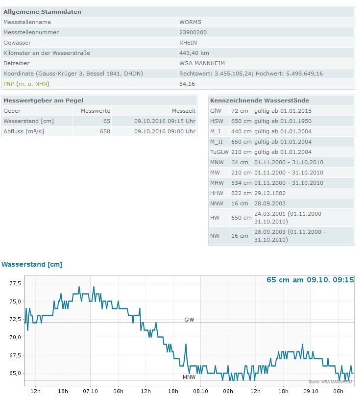 Für die Beurteilung der Fahrrinnenverhältnisse gilt der gleichwertige Wasserstand (GlW) an einer Reihe von Richtpegeln. Die gleichwertigen Wasserstände sind die Wasserstände, die bei als gleichwertig festgelegten Abflüssen längs einer Flussstrecke auftreten. Sie stellen einen Niedrigwasserstand dar, der im langjährigen Mittel an zwanzig eisfreien Tagen im Jahr an den jeweiligen Richtpegeln unterschritten wird. Wegen der natürlichen Strombettveränderungen (Ablagerungen oder Erosionen) wird der GlW alle zehn Jahre von der Zentralkommission für die Rheinschifffahrt (ZKR) neu festgelegt. Zur Zeit gelten die gleichwertigen Wasserstände von 2012. Die niederländischen Behörden bestimmen den GlW für ihre Pegel selbst in Absprache mit den deutschen Behörden.
